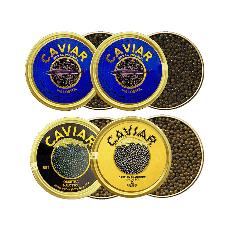- 2 x tins sturgeon caviar Malossol, 30 g each